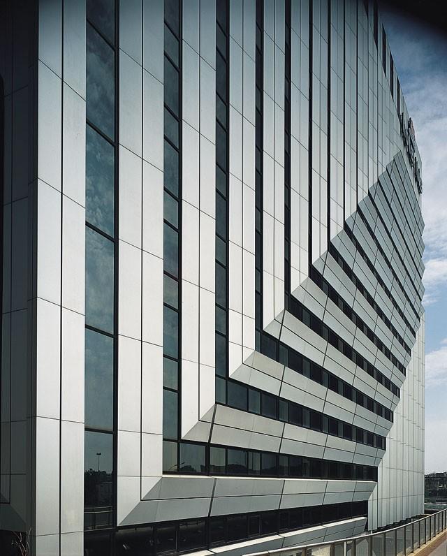 This Aloxide product has been the reference for architectural and general purpose anodised architectural sheet for over 45 years. A treatment for matte architectural façade and interior applications with excellent control of gloss and colour levels within a coil and from coil-coil. This is the product which is also widely sold by distributors in Europe. Available in natural and the full range of UV resistant colours and organic colours. X-Wall has a multitude of fine architectural references around the world. On site studies have shown that there is no diminution in the anodic film over the very long term – even in aggressive environments.