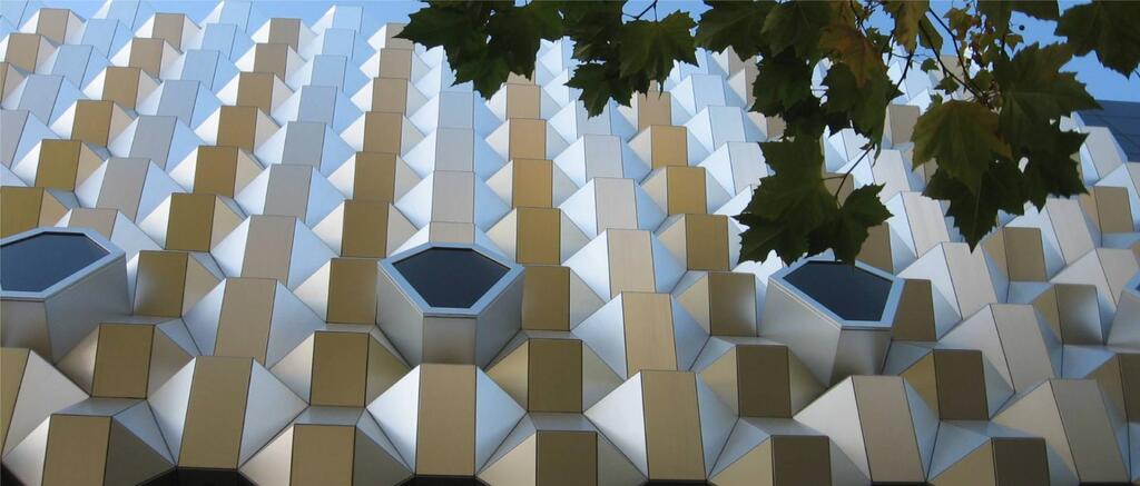 De verschillende hoeken van de panelen geven een mooie interactie met de dagelijks veranderende zonlichtomstandigheden.